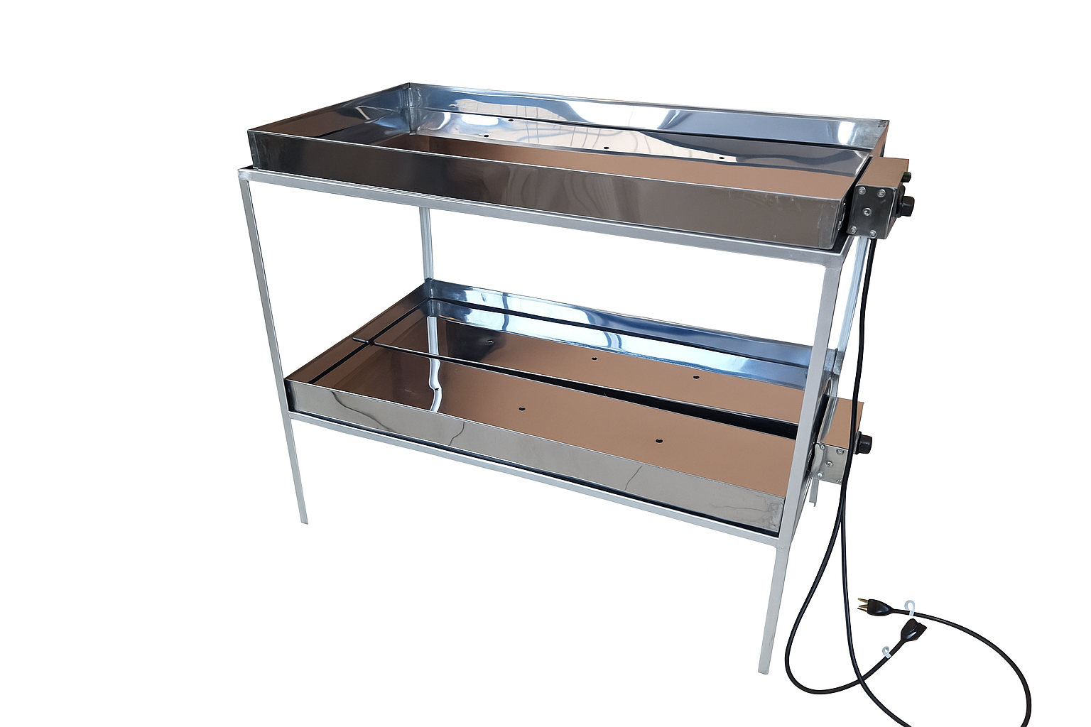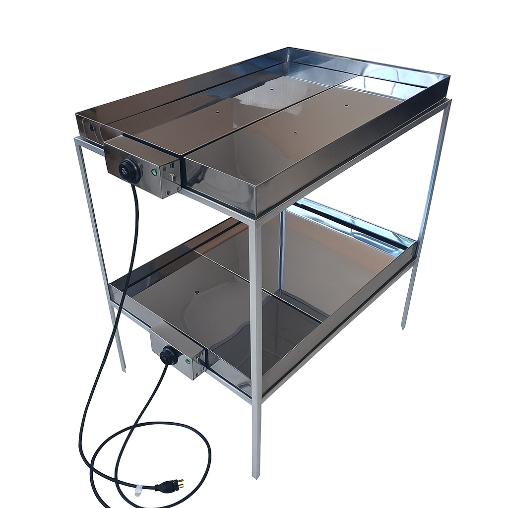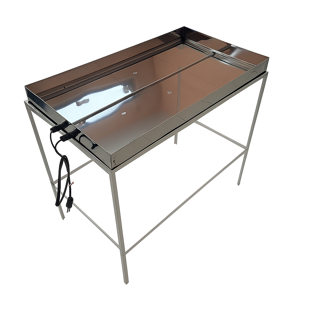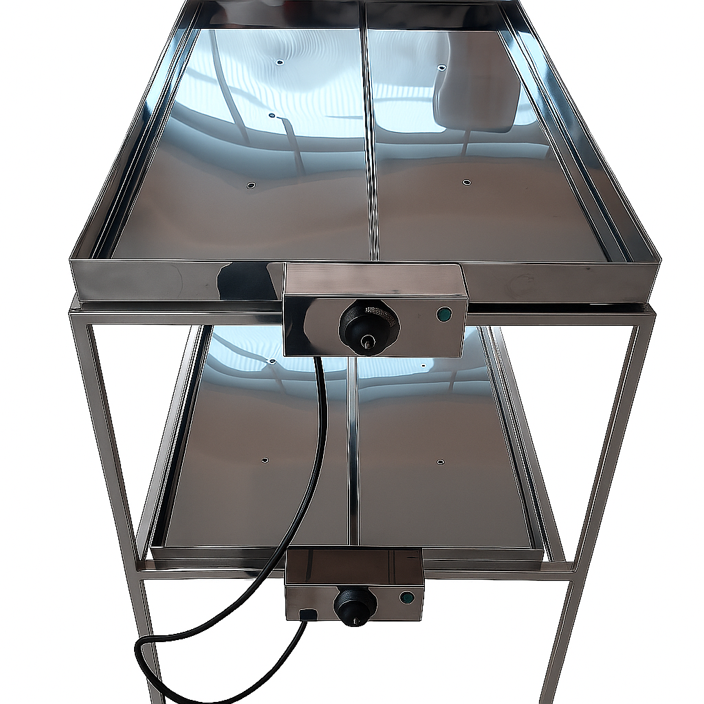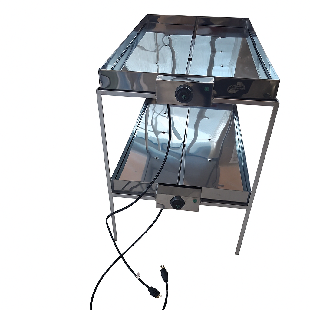 É fabricado em aço inox 430, com um sistema de aquecimento banho-maria que permite aquecer diversas marmitas ao mesmo tempo. O aquecimento da água se dá pelo uso de uma resistência tubular em aço inox e blindada de 55 cm. Foi dimensionado para acomodar com tranquilidade as marmitas de tamanho padrão.
